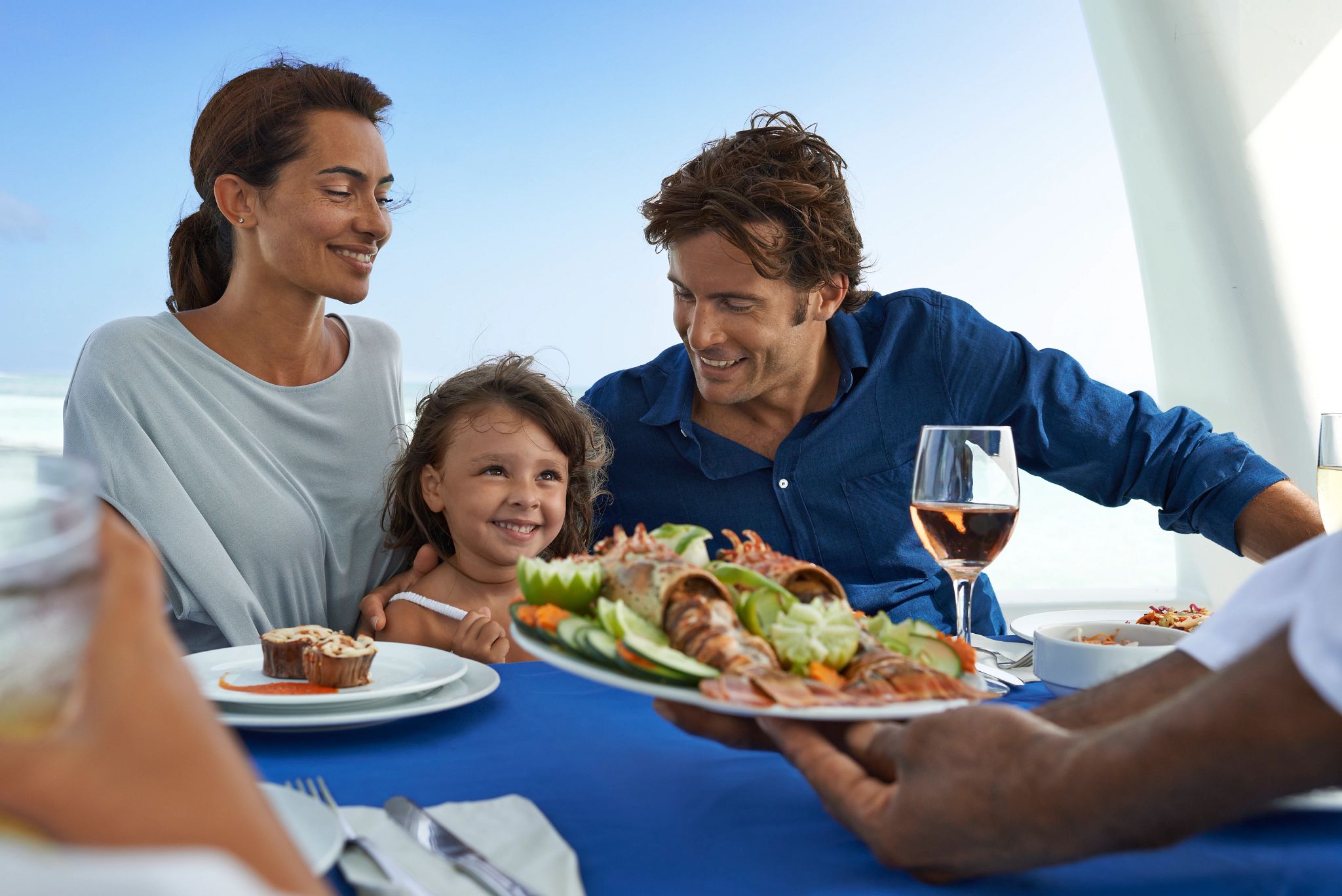 - Aperitif at the natural pool with floating bar, lunch on the boat (lobster, chicken skewers, pasta salad, desserts), drinks (water, juices, white and rosé wines, soft drinks), music and entertainment The boat is equipped with a slide